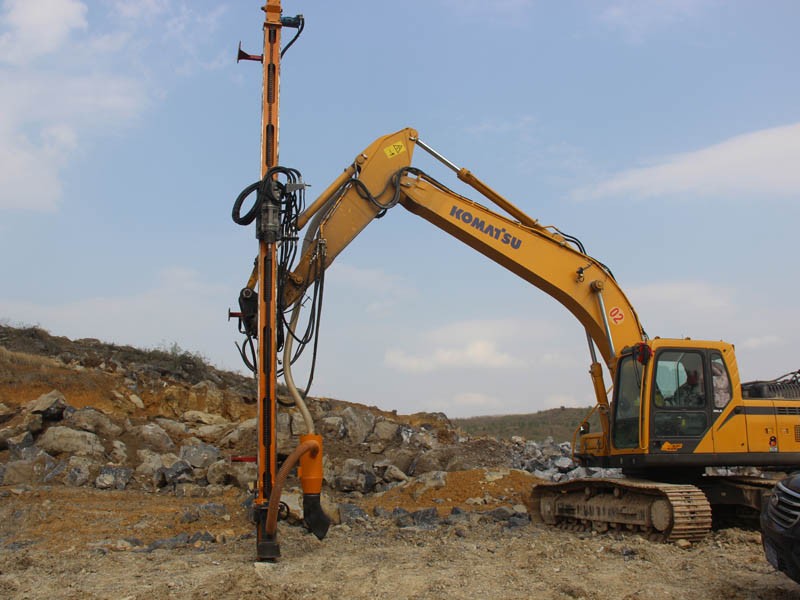 4、鉆孔性能良好,能實現不同地層條件下的鉆孔作業,就算在復雜地層鉆孔也有很好的鉆進能力。 作業半徑大且靈活自如,力臂的伸展和挖掘機的 360°旋轉使得其更加靈活。